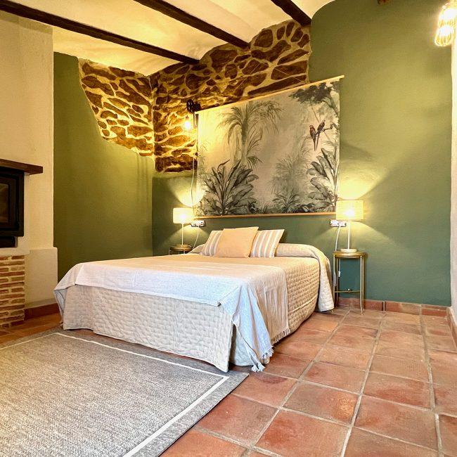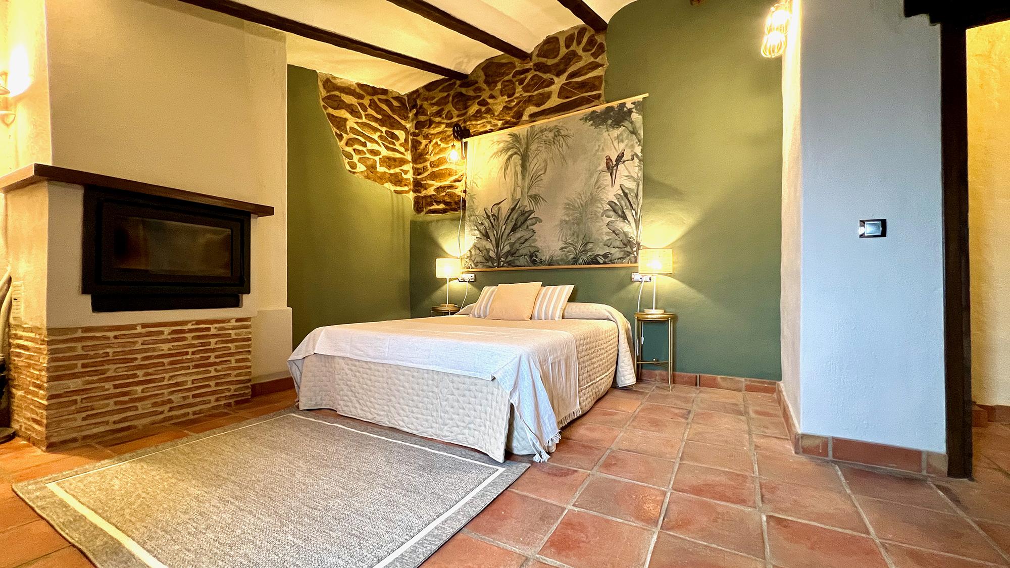 Esta habitación es el ‘master bedroom’, como se llama en Inglés. Es grande, con baño propio y chimenea, acceso a una amplia terraza con vistas a la sierra. Además cuenta con cama supletoria.