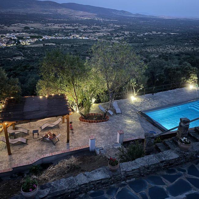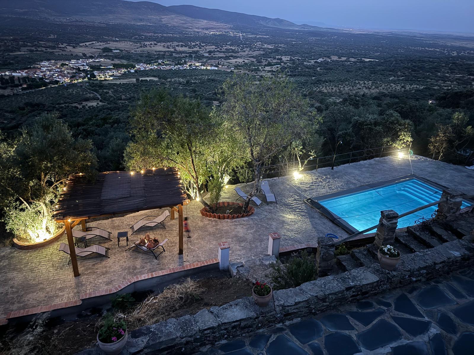 Este retiro, situado estratégicamente, ofrece un espectáculo visual incomparable. Desde sus ventanas, terraza y patio, se despliegan las impresionantes Sierras de las Villuercas, los serenos pantanos de Badajoz, y la pintoresca extensión de olivares y viñedos que abrazan el entorno. Aquí, en este rincón de la tierra, cada atardecer se convierte en una obra maestra, pintando el horizonte con tonalidades cálidas que acarician las colinas y reflejan la serenidad de la naturaleza circundante. La Cordonera esta situada a una altitud de unos 500 metros, es por ello que La Cordonera destaca por sus imponentes vistas.